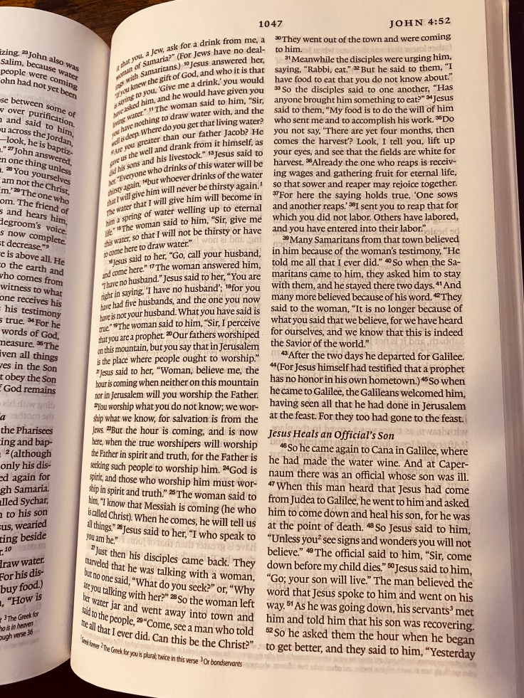 Opening this bible and you’ll see nothing different from a 1990 era hotel room Gideon bible. The pages are thin and font and line spacing are extremely unpleasant on the eye. There is nothing special about this bible, especially to justify a $50 price tag!